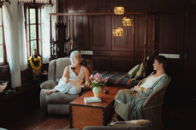 Herbergin eru 9 með aðstöðu fyrir 16 manns. Þar er loftkæling, verönd, sérbaðherbergi, ísskápur, kaffi/te, öryggishólf og WiFi sem getur verið mishratt þegar netglaðir Íslendingar fylla hótelið. Sundlaug og jógatímar eru á staðnum og í næstu húsum má fá hvers kyns meðferðir.  Flestir koma sér upp eigin nuddara, klæðskera og snyrtistofum. Og í næstu götu er tannlæknastofa hins afar færa dr. Abrahams Sebastian þar sem aldrei færri en fjórir horfa upp í mann í einu.